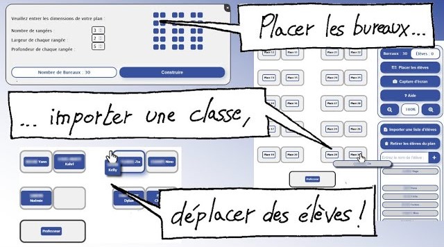 Une fois la liste des élèves saisie ou importée, les élèves peuvent être aléatoirement placés (ou non) sur ce plan de classe. Cet outil est open source et respecte les normes RGPD. Un tutoriel vidéo est disponible en cas de besoin.