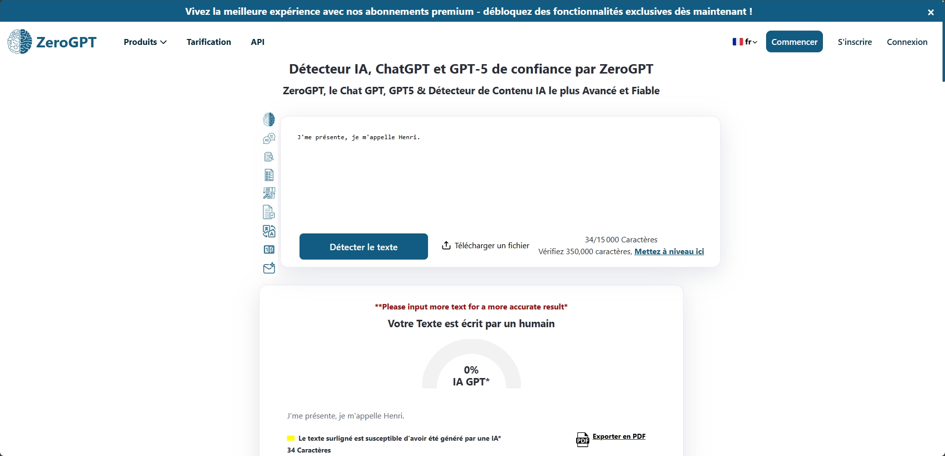 Cependant, la fiabilité de ces détecteurs n’étant pas absolue, il est préférable de l’utiliser comme un indicateur plutôt que comme une preuve irréfutable. En classe, il peut aussi servir à sensibiliser les élèves aux enjeux liés à l’IA et à encourager une réflexion sur l’éthique et l’usage responsable de ces technologies.