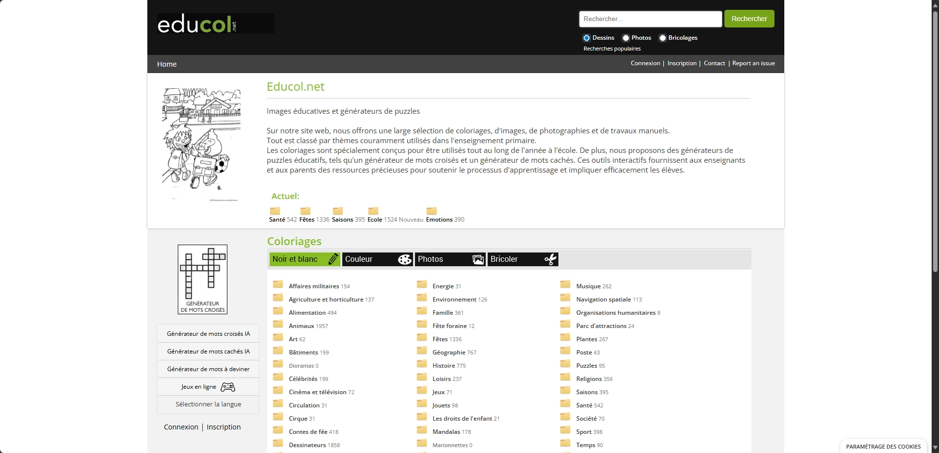 Educol est un site en ligne dédié aux enseignants d'écoles primaires, conçu initialement pour héberger une large collection de coloriages éducatifs à destination des élèves. En plus de cette bibliothèque visuelle, Educol propose des outils pratiques tels qu'un générateur de mots croisés et un générateur de...